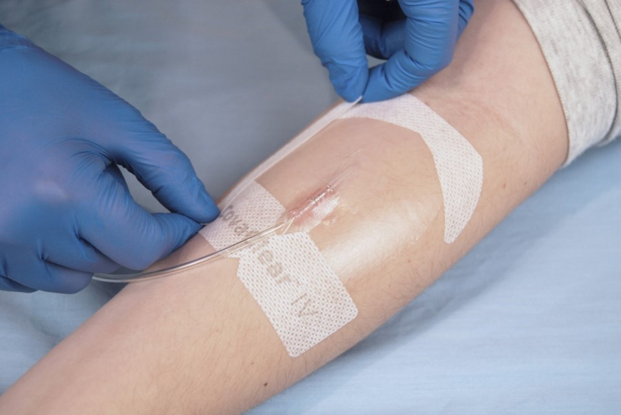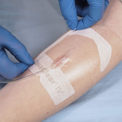 Covalon's transparent silicone vascular access dressing provides patients with comfort and protection during infusion treatments, showcasing the company's commitment to compassionate and effective care. (Photo: Business Wire)