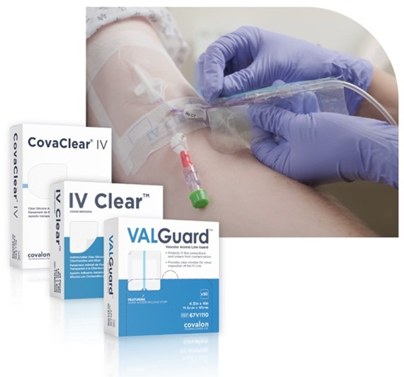 - CovaClear® IV - a soft silicone adhesive clear IV dressing that helps protect insertion sites from external contaminants. Suitable for patients who either don’t require, or cannot tolerate, antimicrobials.